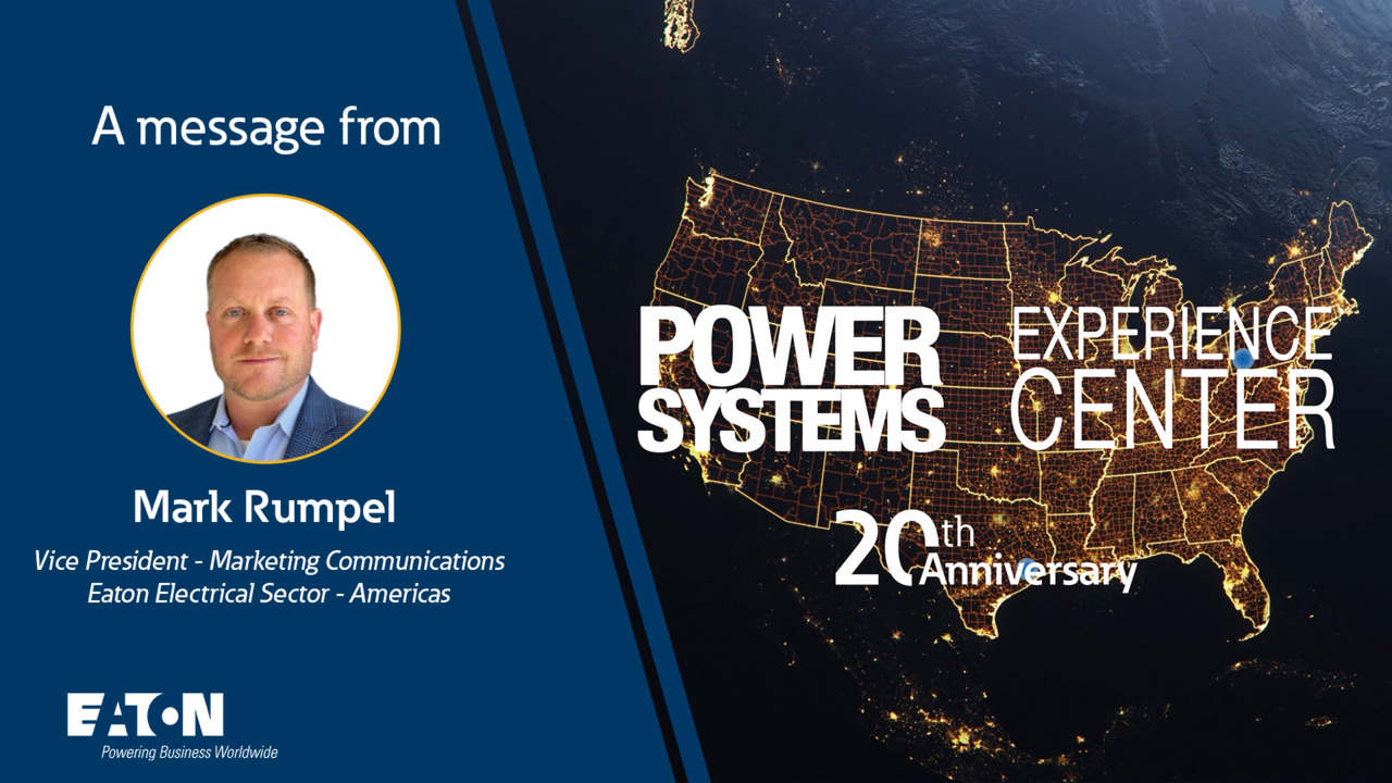 Mark Rumpel, Vice President of Marketing Communications for Eaton's Electrical Sector in the Americas, highlights the 20th anniversary of Eaton's Power Systems Experience Centers (PSEC).